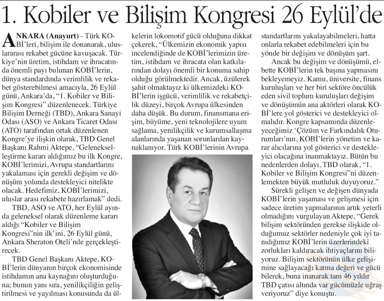 • 1. Kobiler ve Bilişim Kongresi 26 Eylül’de – ANAYURT
