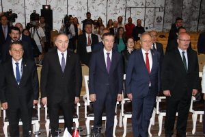 Açılış konuşmalarının ardından TBD Genel Başkanı, ASO ve ATO Yönetim Kurulu Başkanları Bilim Sanayi ve Teknoloji Bakanı Faruk Özlü’ye plaket taktim ettiler.