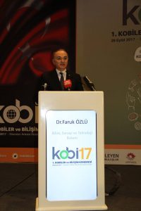 Bilim, Sanayi ve Teknoloji Bakanı Faruk Özlü’nün açılış konuşması yaptığı kongrede Bakan Özlü, KOBİ’lerin bilişimle, teknolojiyle, Ar-Ge ve inovasyona buluşmak zorunda olduğunu belirterek, “KOBİ’lerimizin yeni sanayi anlayışının gerektirdiği şekilde donatmamız gerekiyor. Her zaman söylüyoruz KOBİ’ler Türk ekonomisinin lokomotif unsurlarıdır diye. Bunu bir adım daha öteye götürürsek KOBİ’ler ekonominin çelik çekirdeğidir diyebiliriz. KOBİ tanımına baktığımızda Türk ekonomisinin esasen bir KOBi ekonomisi olduğunu da söyleyebiliriz. Türkiye’deki işletmelerin yüzde 99’u KOBİ’lerdir. Bu oran Almanya, Fransa, Güney Kore’de de bizimle aynıdır. Toplam istihdamın yüzde 76’sı katma değerin yüzde 54’ü ihracatımızın yüzde 60’nı KOBİ’lerin oluşturduğunu biliyoruz. Tüm bu rakamlar bize KOBİ’lerin ihmal edilemeyecek kadar önemli olduğunu göstermektedir.
