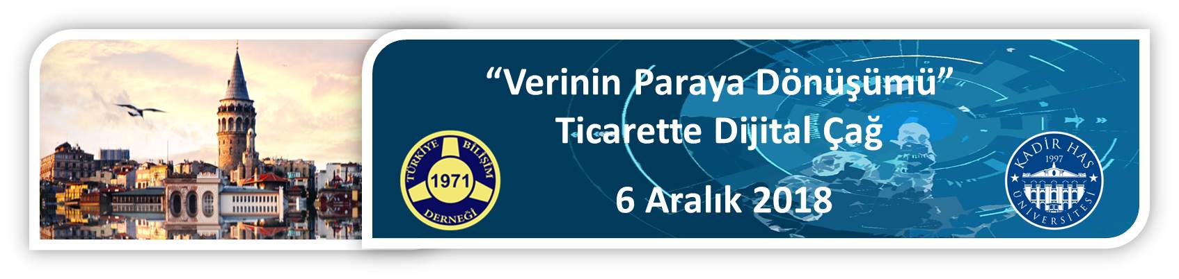 Türkiye Bilişim Derneği İstanbul Şubesi olarak bu yıl on ikincisini düzenleyeceğimiz İstanbul Bilişim Kongresi 6 Aralık 2018 tarihinde “Verinin Paraya Dönüşümü; Ticaretin Dijital Çağı” teması ile Kadir Has Üniversitesi Cibali Kampüsü’nde yapılacaktır.