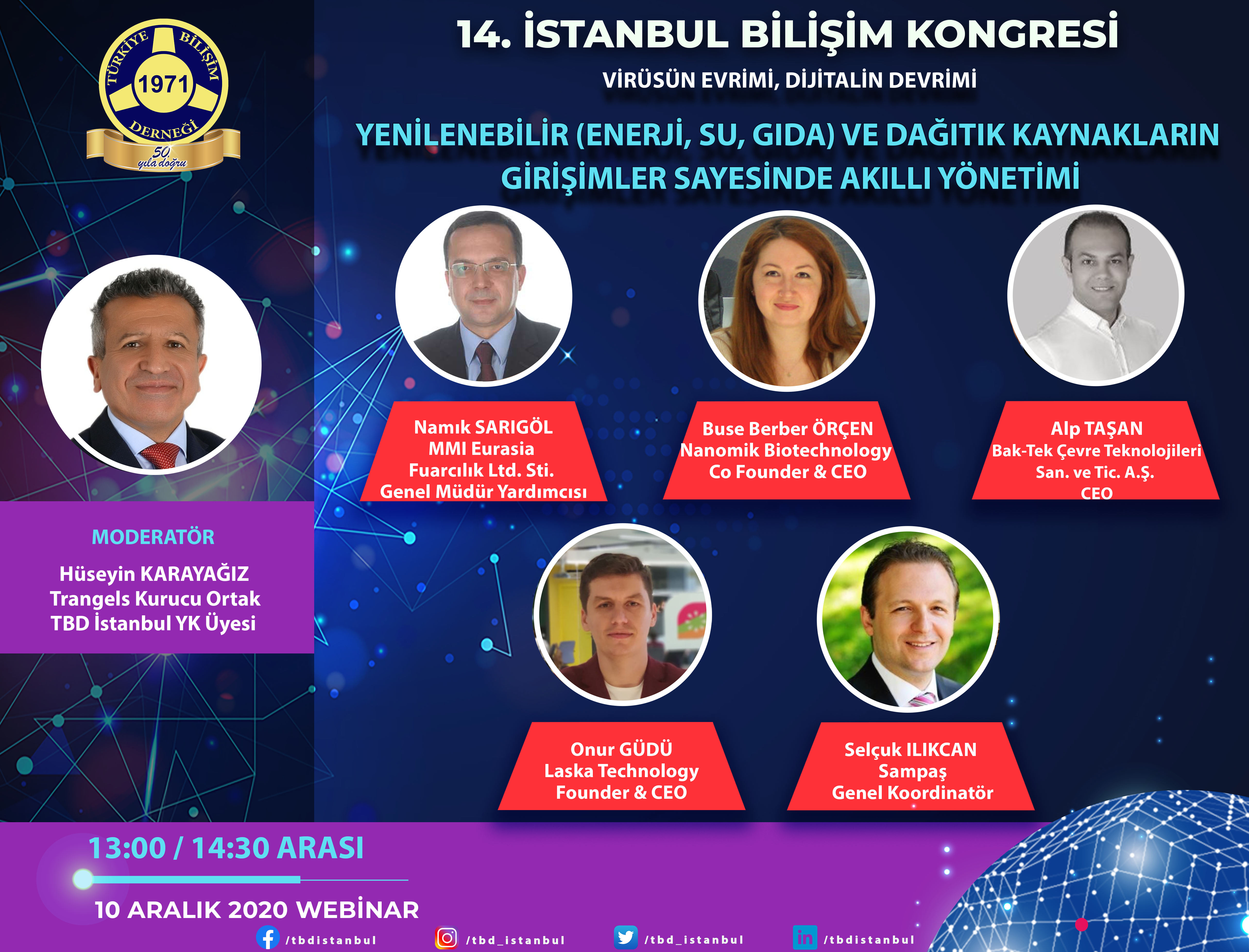 14. İstanbul Bilişim Kongresinde konusunda uzman konuşmacılarımızla “Yenilenebilir (Enerji, Su, Gıda) ve Dağıtık Kaynakların Girişimler Sayesinde Akıllı Yönetimi” konulu panelimizi işleyeceğiz.