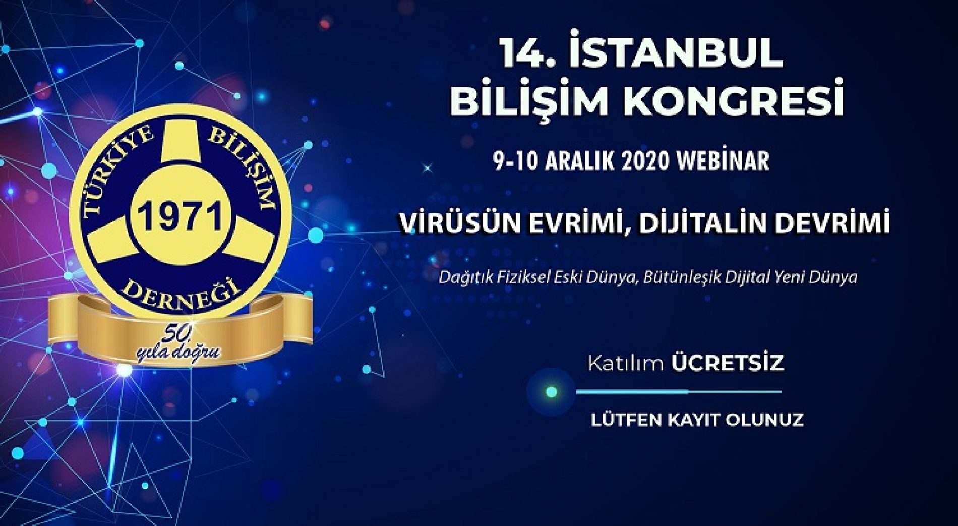 Türkiye Bilişim Derneği İstanbul Şubesi olarak düzenleyeceğimiz 14. İstanbul Bilişim Kongresi bu sene “Virüsün Evrimi, Dijitalin Devrimi: Dağıtık Fiziksel Eski Dünya, Bütünleşik Dijital Yeni Dünya” temasıyla 9-10 Aralık 2020 tarihlerinde online platformda yapılacaktır. Kongremizde, Dünyada ve Türkiye’deki pandemi sürecini ve yeni teknolojik gelişmeleri, Akıllı Şehirleri, Afet Bilişimini, Yenilenebilir Enerjileri, Sağlık ve Tarımın önemini, Sektörleri ve kurumları değişime zorlayan süreç ve teknolojik çözümleri, dijital dönüşümün hızlanması ile gelecekte değişecek iş, ticaret ve yaşam stilleri üzerine çalışmaları işleyeceğiz. Gelecek dönemimize ışık tutacak bu önemli konuları yine birbirinden değerli ve duayen konuşmacılarımızla birlikte ele alacağız.