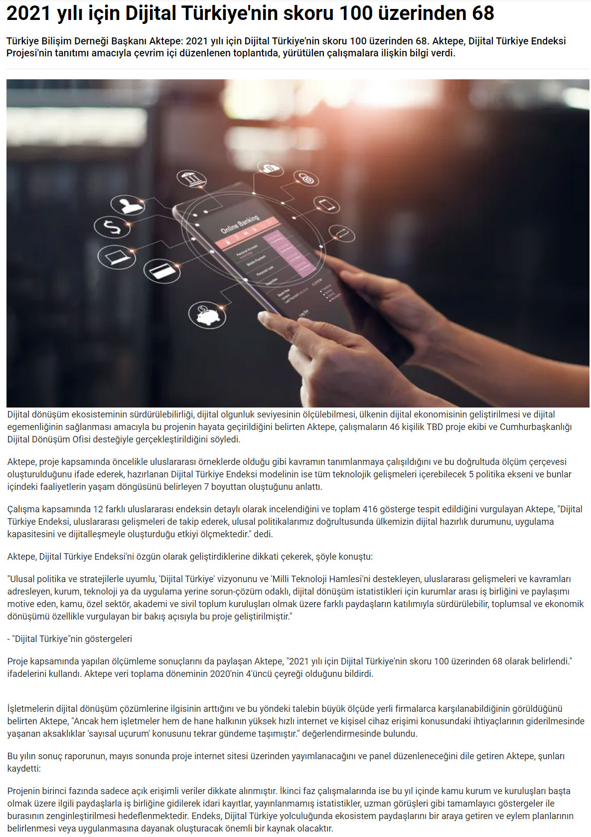 2021 yılı için Dijital Türkiye’nin skoru 100 üzerinden 68 – BİR BORSA