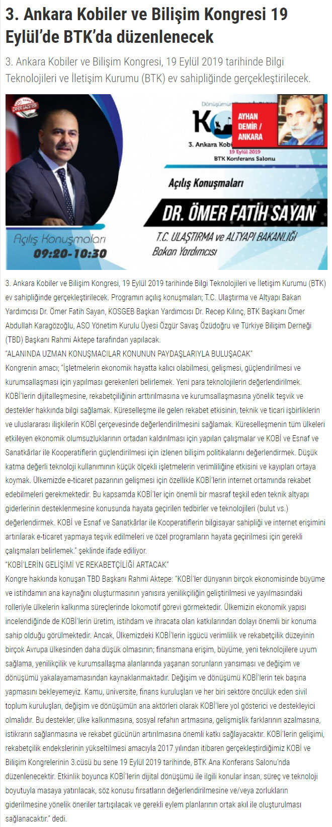 3. Ankara Kobiler ve Bilişim Kongresi 19 Eylül’de BTK’da Düzenlenecek – ZAFER