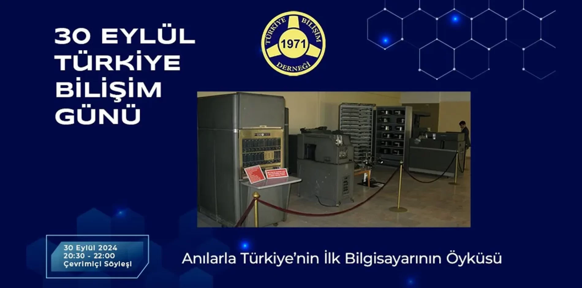“Anılarla Türkiye’nin İlk Bilgisayarının Öyküsü”, 30 Eylül 2024 Pazartesi günü saat 20:30’da Türkiye’nin ilk bilgisayarı IBM 650’yi programcı olarak kullanan Sn. Kaya KILAN başta olmak üzere dönemin tanıklarınca çevrimiçi etkinlikte paylaşılacaktır.