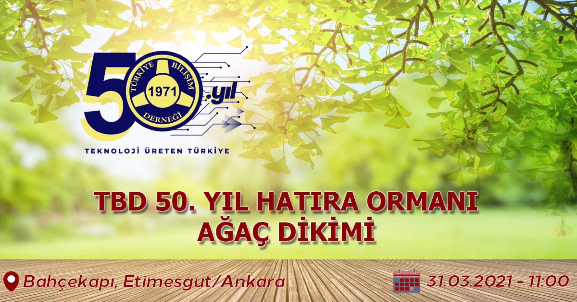 Türkiye Bilişim Derneği’nin 50. Yılı anısına 31 Mart 2021 (Çarşamba) tarihinde Saat 11:00 itibarıyla başlayacak ve sosyal mesafe kurallarına uygun olarak gerçekleştirilecek olan “50. YIL HATIRA ORMANI AĞAÇ DİKİMİ” etkinliğimize sizleri de beklemekteyiz.