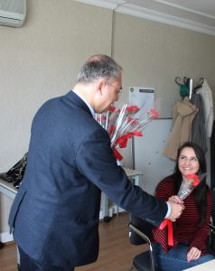 TBD Yönetim Kurulu Başkanı İlker Tabak ve TBD Ankara Şubesi Başkanı Nurcan Özyazıcı Sunay üye olan kadınlara ve TBD çalışanlarına çiçeklerini vererek, 8 Mart Dünya Emekçi Kadınlar Gününü kutladı.