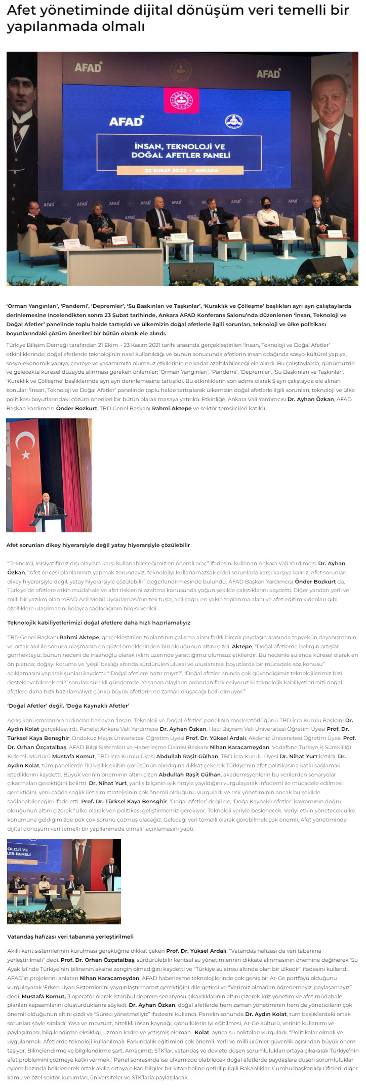 Afet Yönetiminde Dijital Dönüşüm Veri Temelli Bir Yapılanmada Olmalı – BT HABER