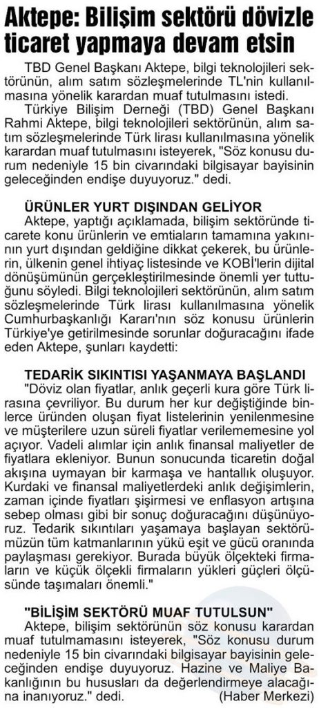 • Aktepe: Bilişim Sektörü Dövizle Ticaret Yapmaya Devam Etsin – ÇORUM KESİN KARAR