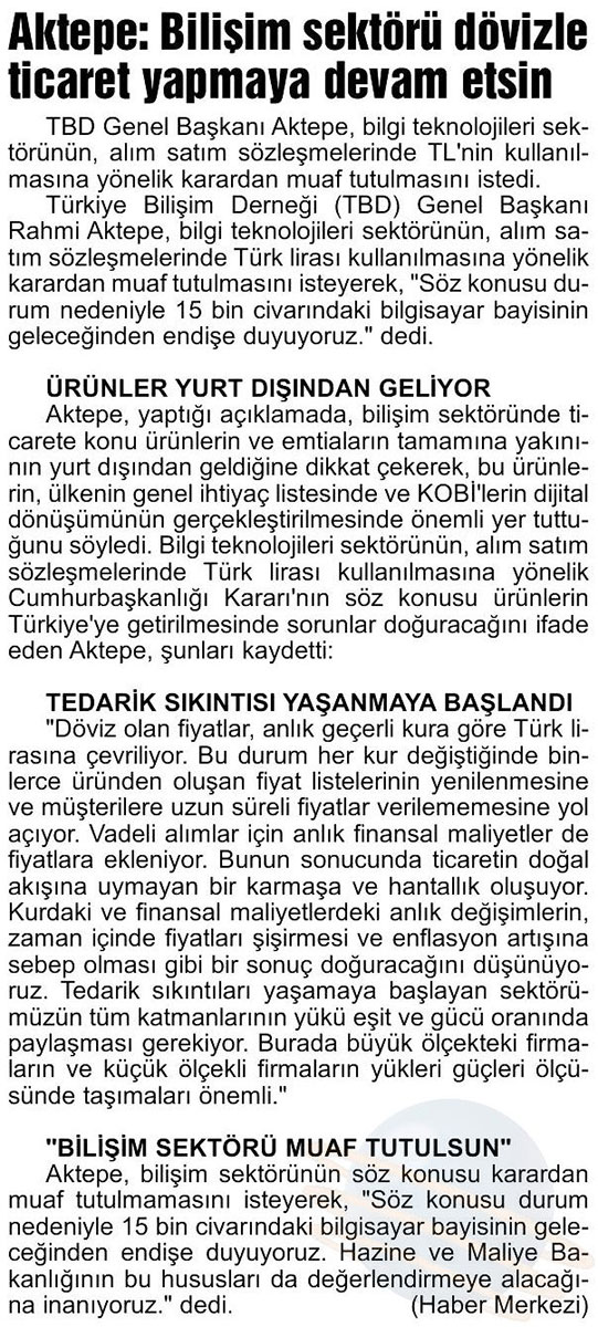 Aktepe: Bilişim Sektörü Dövizle Ticaret Yapmaya Devam Etsin – ÇORUM KESİN KARAR
