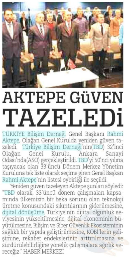 Önceki Türkiye Bilişim Derneği Genel Başkanı Rahmi AKTEPE Güven Tazeledi - ZAFER