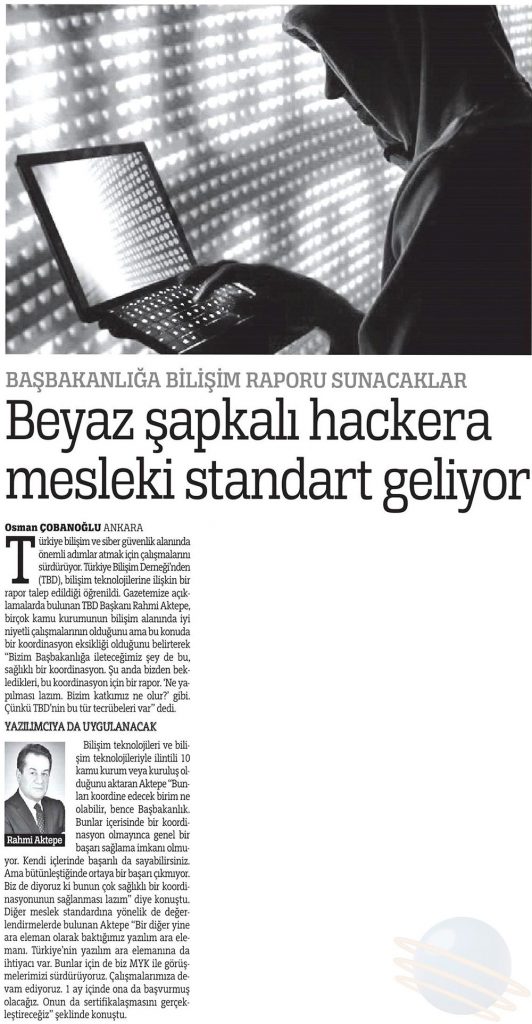 • Beyaz Şapkalı Hackera Mesleki Standart Geliyor – TÜRKİYE GAZETESİ