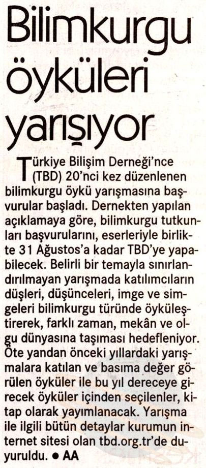 • Bilimkurgu Öyküleri Yarışıyor – CUMHURİYET