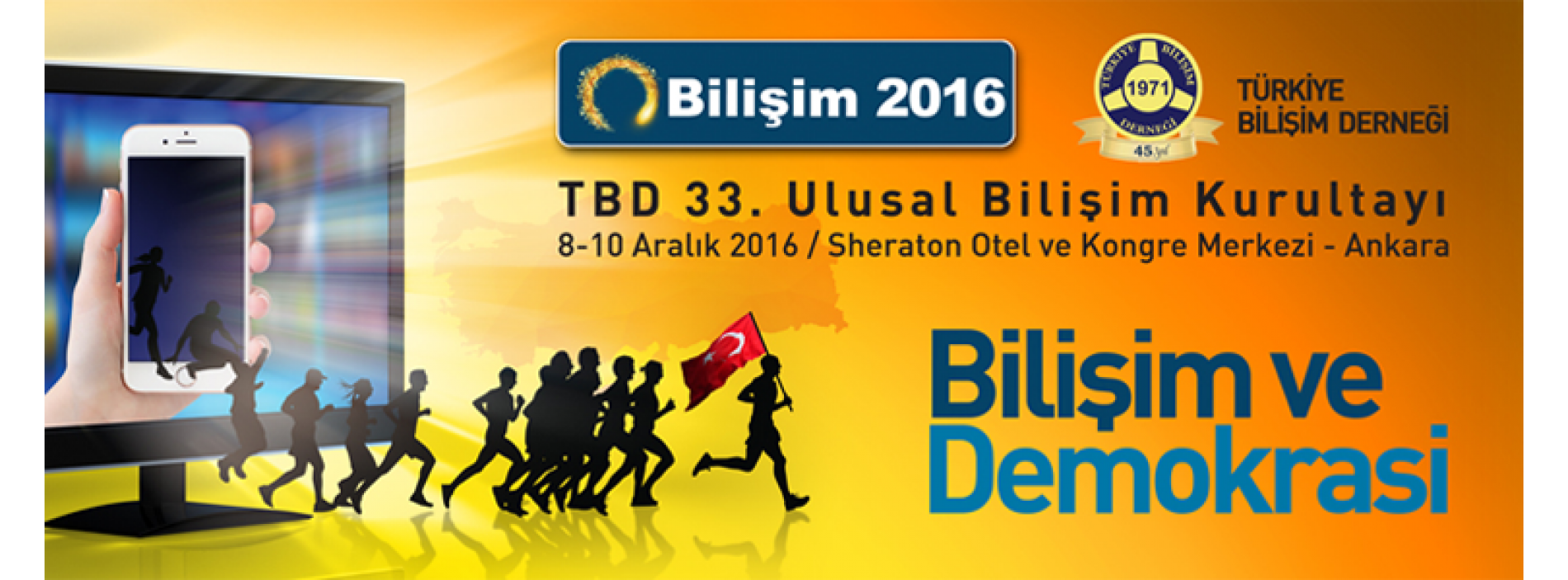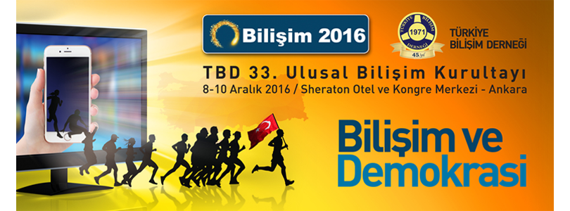 Türkiye Bilişim Derneği tarafından tüm bilişim paydaşlarının katılımı ile gerçekleştirilecek TBD 33. Ulusal Bilişim Kurultayı BİLİŞİM 2016, 08‐09 Aralık 2016 tarihlerinde “BİLİŞİM ve DEMOKRASİ” ana temasıyla Sheraton Ankara Otel ve Kongre Merkezi’nde gerçekleştirilecektir.