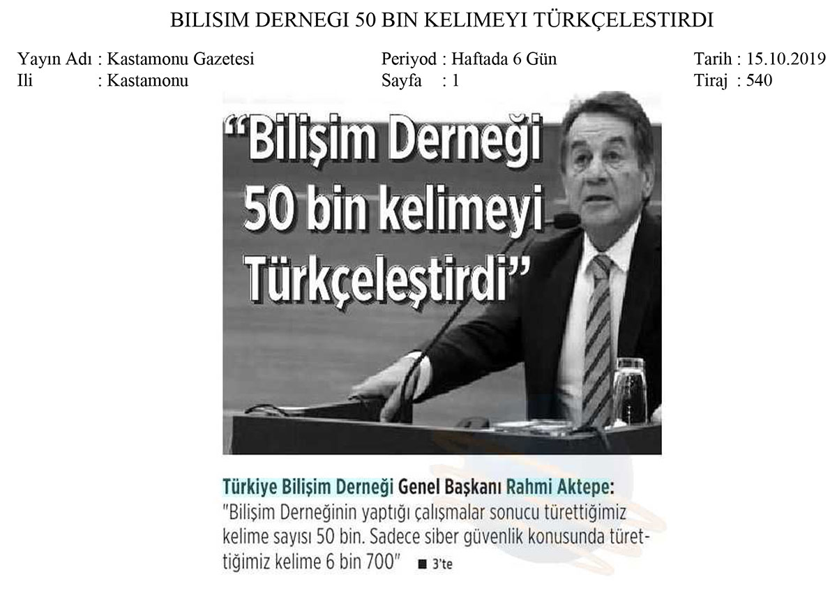 • Bilişim Derneği 50 Bin Kelimeyi Türkçeleştirdi – KASTAMONU GAZETESİ
