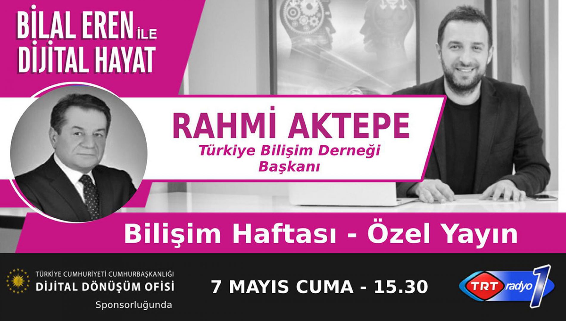 07.05.2021 | Bilal Eren’in hazırlayıp, Cumhurbaşkanlığının Dijital Dönüşüm Ofisinin sunduğu Dijital Hayat programına bu hafta Türkiye Bilişim Derneği Genel Başkanımız Rahmi Aktepe konuk oldu.