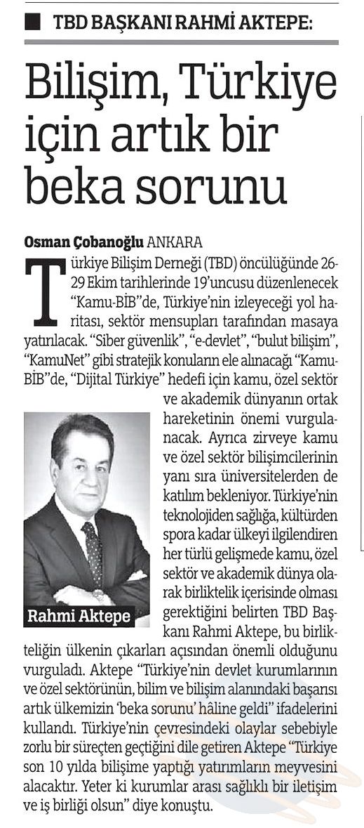 • Bilişim, Türkiye İçin Artık Bir Beka Sorunu – TÜRKİYE GAZETESİ