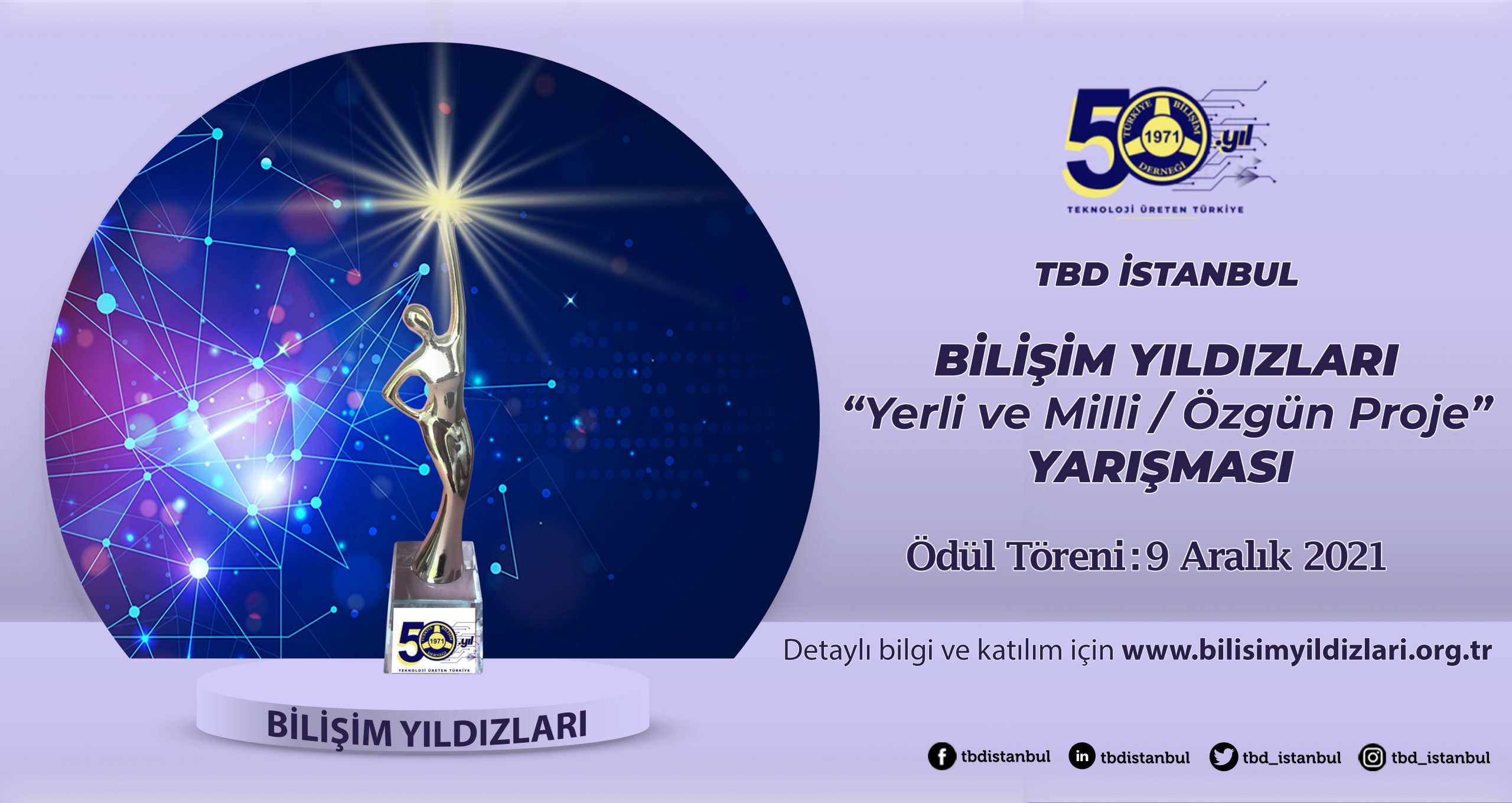 Ülkemizde bilişim alanındaki yenilik ve gelişmeleri yakından takip eden ve bilişim kültürünün yayılmasında öncülük eden Türkiye Bilişim Derneği (TBD) 50. Yıl Etkinlikleri kapsamında TBD İstanbul Bilişim Yıldızları bu yıl “Yerli ve Milli / Özgün Proje Yarışması” temasıyla düzenlemektedir. Yarışma Türkiye çapında olup; özel sektör, Ar-Ge merkezi olan özel sektör firmaları, üniversite, teknopark, teknokent şirketleri, yerel yönetimler ve Sivil Toplum Kuruluşları (STK)’ndan gelecek gerçekleştirilmiş Yerli ve Milli / Özgün Proje uygulamalarını kapsamaktadır.