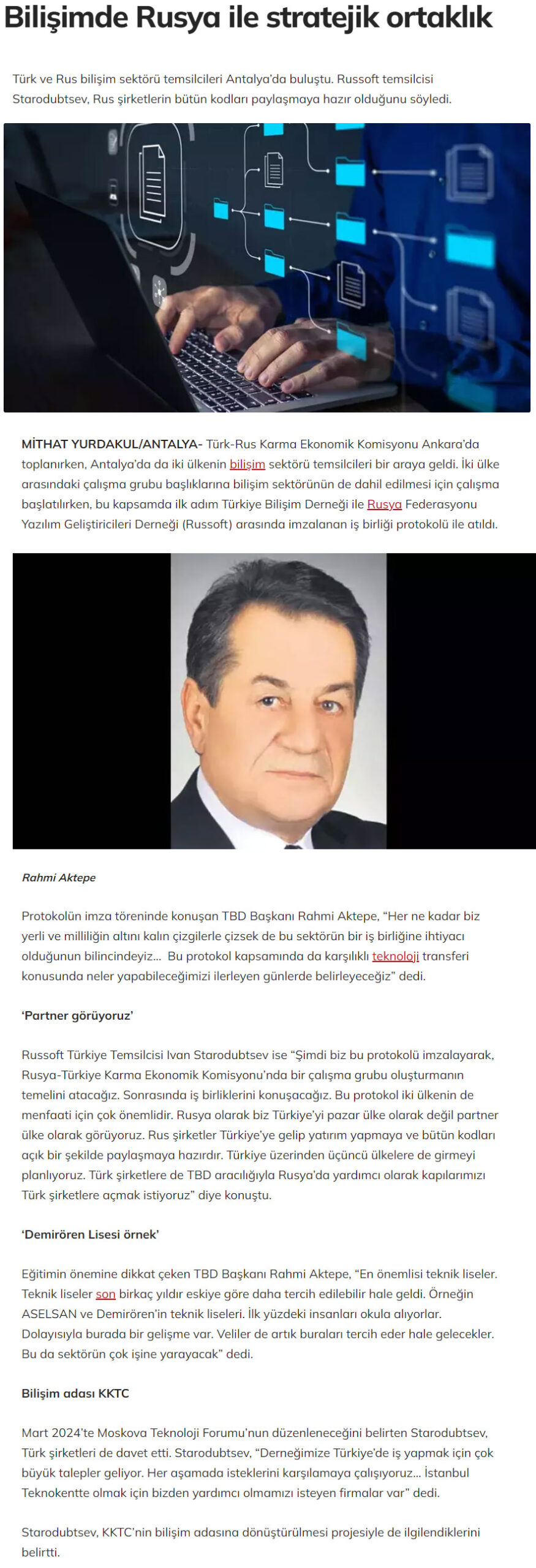 • Bilişimde Rusya ile Stratejik Ortaklık – MİLLİYET