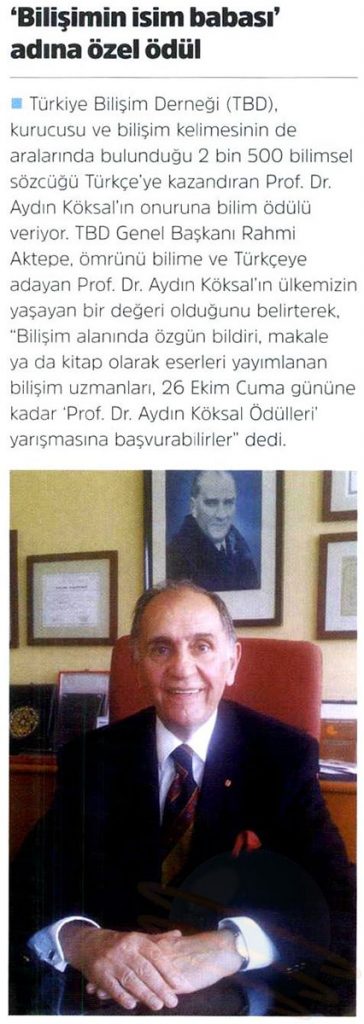 • ‘Bilişimin İsim Babası’ Adına Özel Ödül – DERİN EKONOMİ DERGİSİ