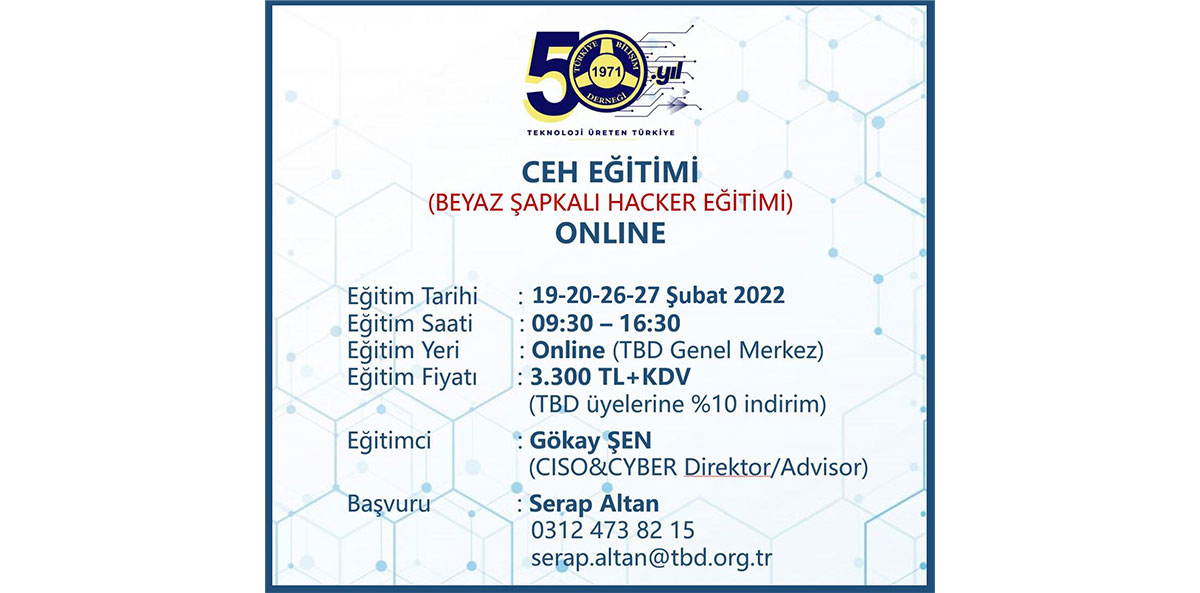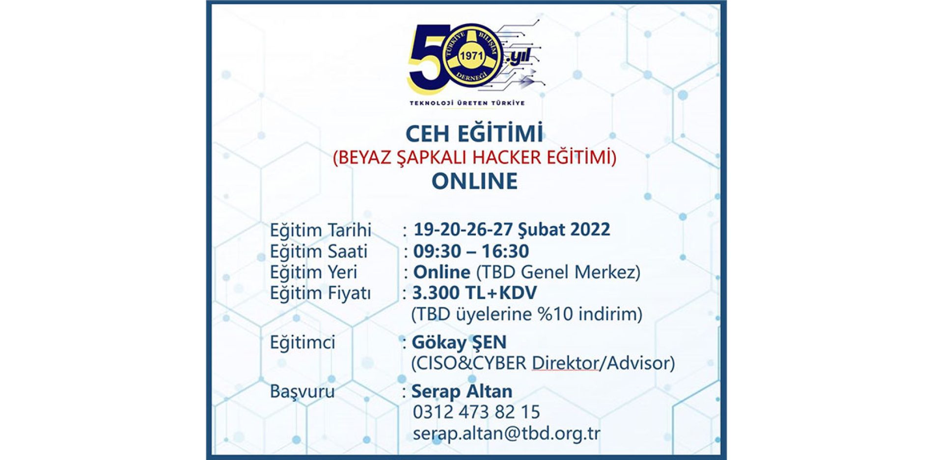 Beyaz Şapkalı Hacker (CEH) eğitimi bilişim sistemlerine sızma yöntemleri ve araçları hakkında detaylı bilgi veren uygulamalı bir eğitimdir. CEH eğitiminde nasıl etik hackerlik yapılacağı hususunda kapsamlı bilgiler verilecektir. Dört gün sürecek CEH eğitimi sonunda katılımcılar çalıştıkları kurumlarda bilgi güvenliğini sağlamak amacıyla kurumsal bilgi sistemlerini tarayabilecek, test yapabilecek, açıklıkları tespit edebilecek ve güvence altına alabilecek yetkinliğe sahip olacaklar.