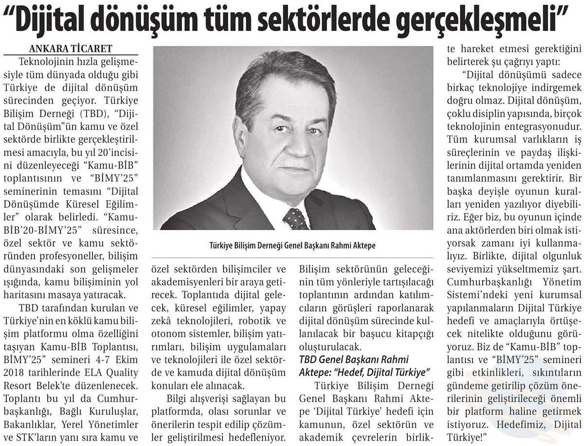 • “Dijital Dönüşüm Tüm Sektörlerde Gerçekleşmeli” – TİCARET GAZETESİ İZMİR