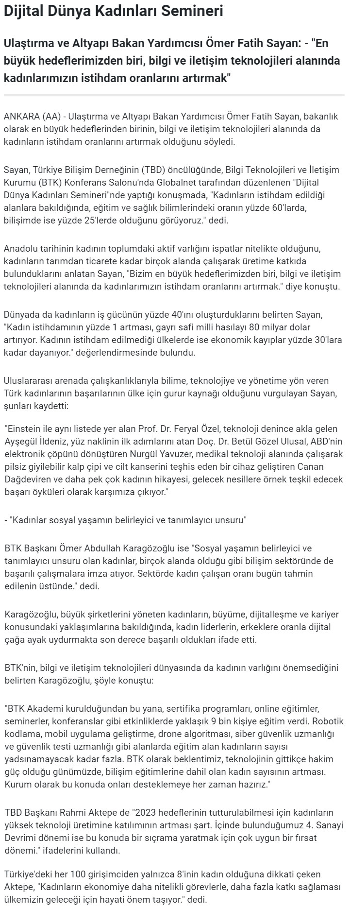 Önceki Dijital Dünya Kadınları Semineri - YENİ AKİT