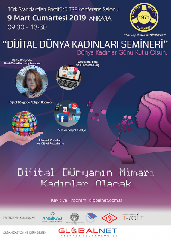 Seminer, Türk Standardları Enstitüsü (TSE), Girişimci İş Kadınları Derneği (ANGİKAD), Hacettepe Üniversitesi Mezunlar Derneği (HÜMED), Gaziosmanpaşa Soroptimist Kulübü, GLOBALNET İnternet Teknolojileri içerik destekleri ve T-SOFT E-Ticaret Firması desteği ile 9 Mart’ta (TSE) Konferans Salonunda gerçekleştirilecek.