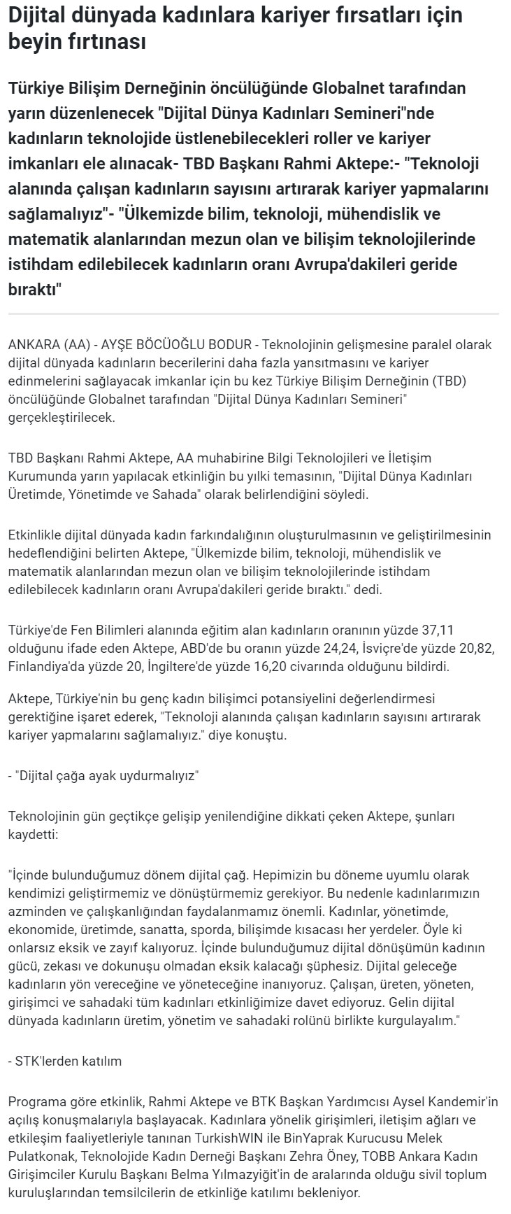 • Dijital Dünyada Kadınlara Kariyer Fırsatları İçin Beyin Fırtınası – MEMLEKET