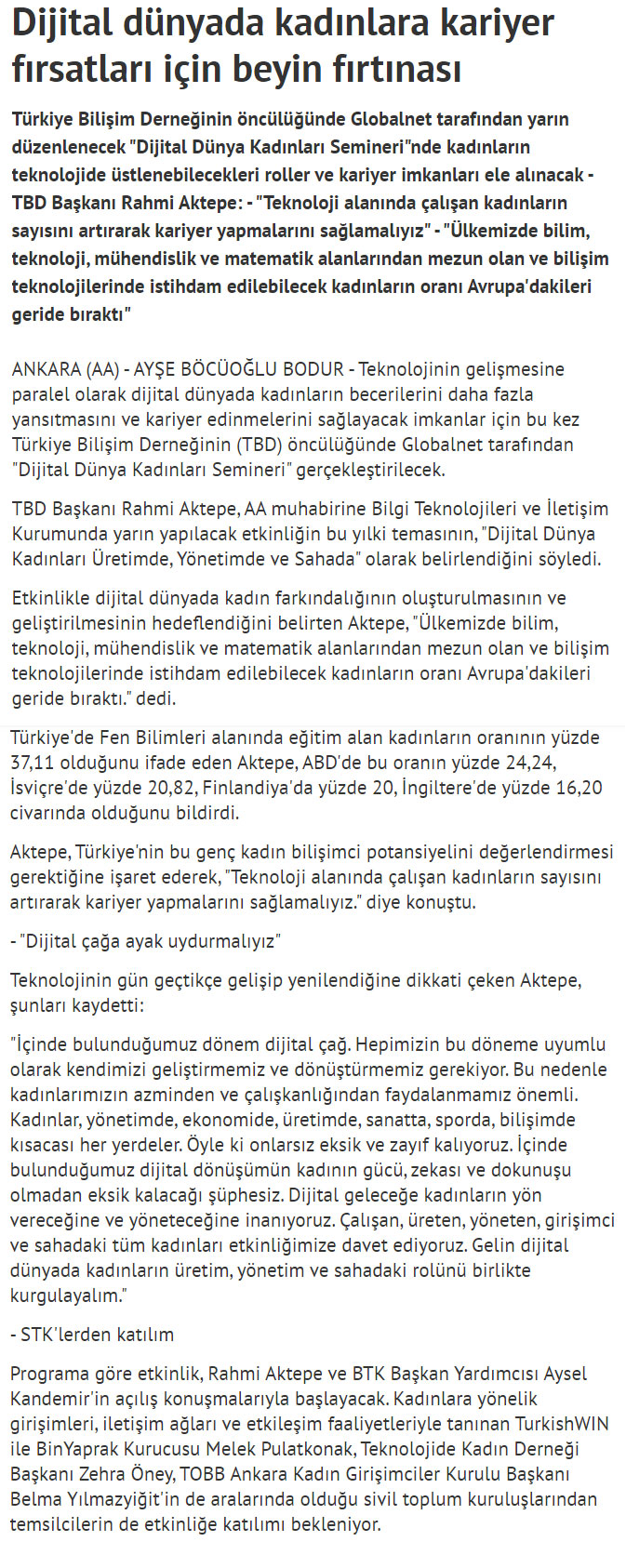 Dijital Dünyada Kadınlara Kariyer Fırsatları İçin Beyin Fırtınası – YENİ AKİT