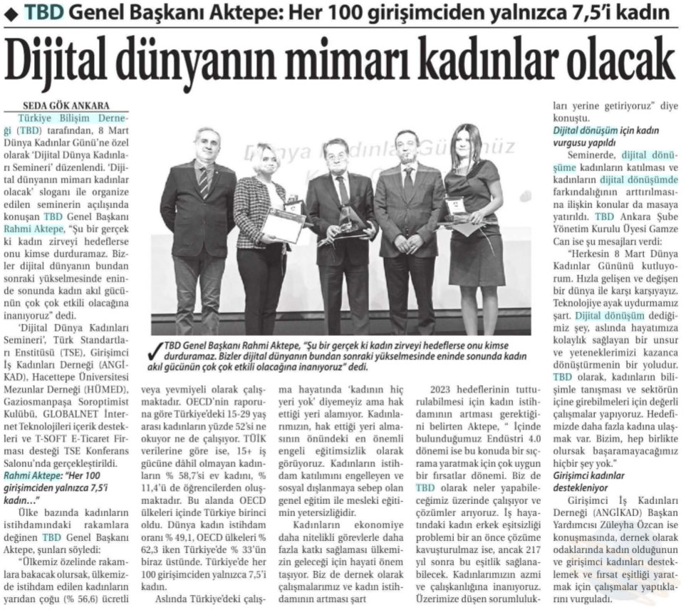 • Dijital Dünyanın Mimarı Kadınlar Olacak – TİCARET GAZETESİ (İZMİR)