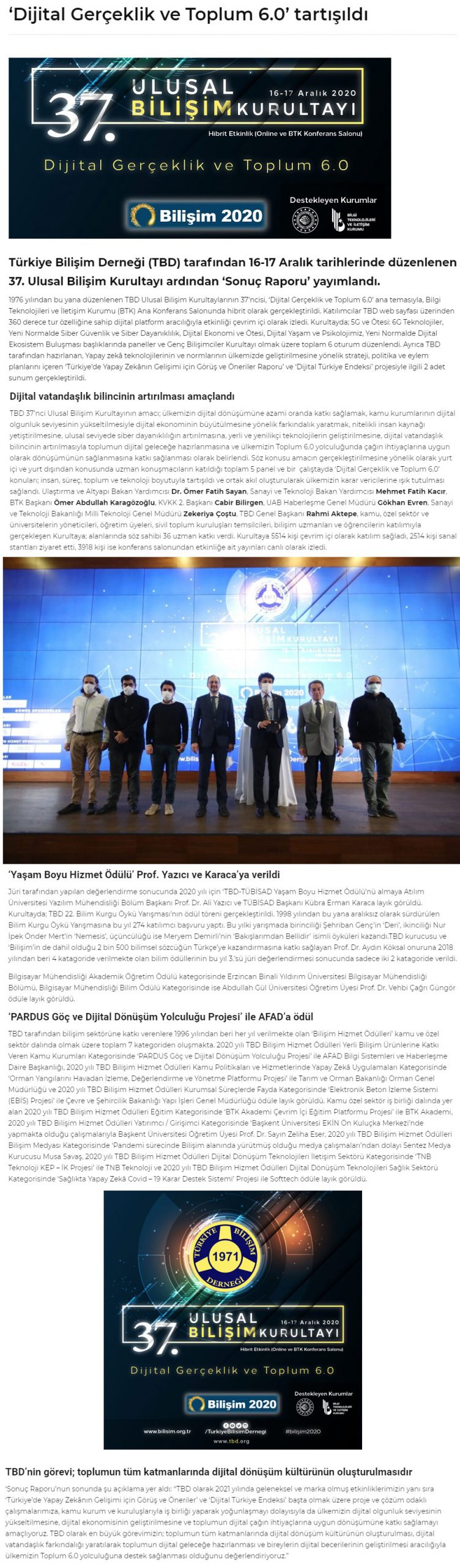 • TBD – TÜBİSAD Yaşamboyu Hizmet Ödülü