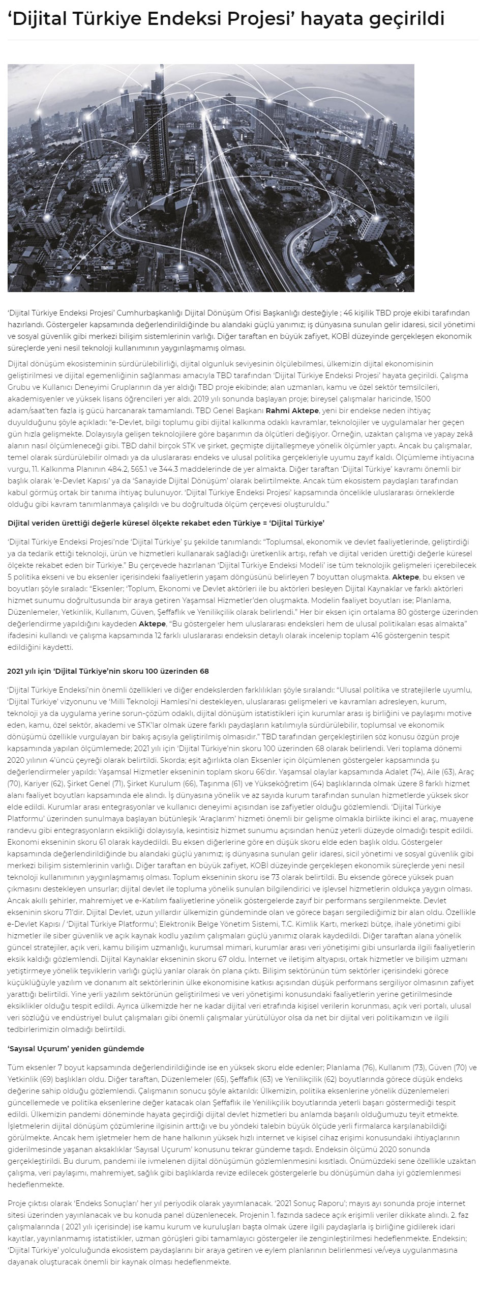 • ‘Dijital Türkiye Endeksi Projesi’ Hayata Geçirildi – BT HABER
