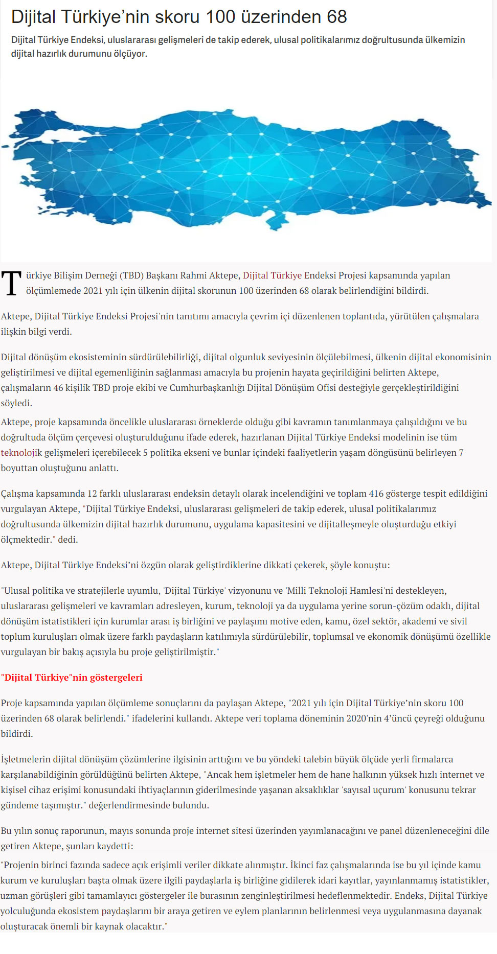 Sonraki Türkiye Bilişim Derneği Başkanı Aktepe: "2021 yılı için Dijital Türkiye'nin skoru 100 üzerinden 68" - HABERLER