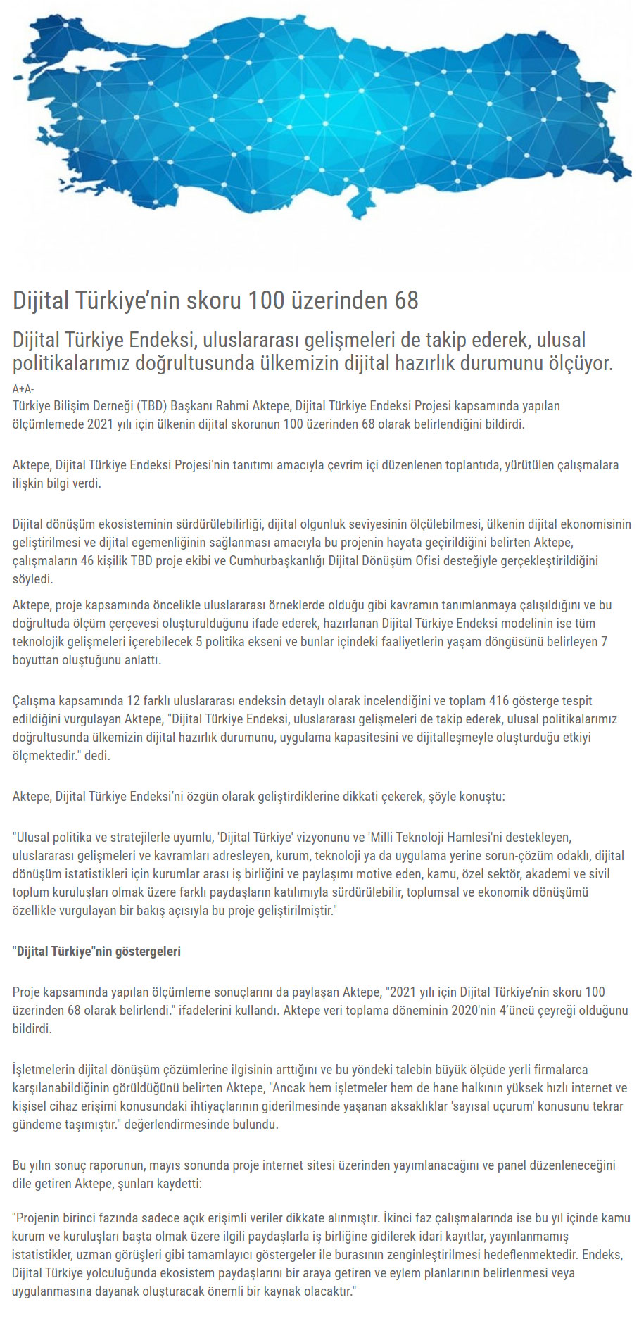 Dijital Türkiye’nin skoru 100 üzerinden 68 Kaynak: Dijital Türkiye’nin skoru 100 üzerinden 68 – RİSALE HABER