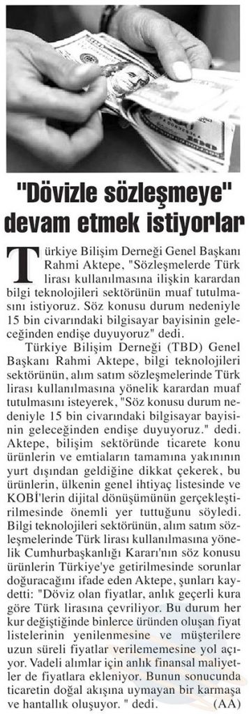 • “Dövizle Sözleşmeye” Devam Etmek İstiyorlar – ANKARA BAŞKENT