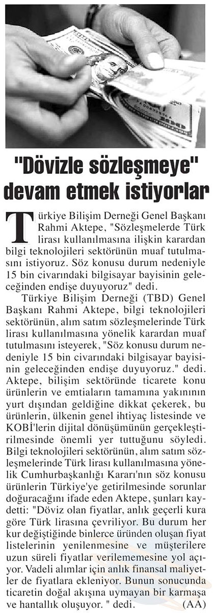 Önceki Bilişim Sektörü 'Dövizle Sözleşmeye' Devam Etmek İstiyor - ANKARA 24 SAAT