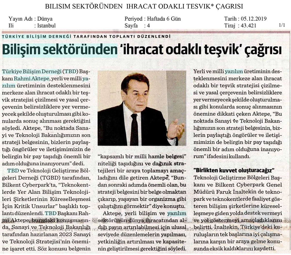 • Bilişim Sektöründen ‘İhracat Odaklı Teşvik’ Çağrısı – DÜNYA