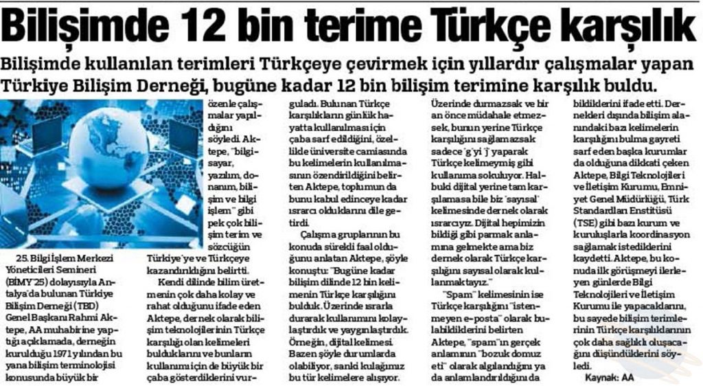 • Bilişimde 12 Bin Terime Türkçe Karşılık – İL GAZETESİ KIRIKKALE