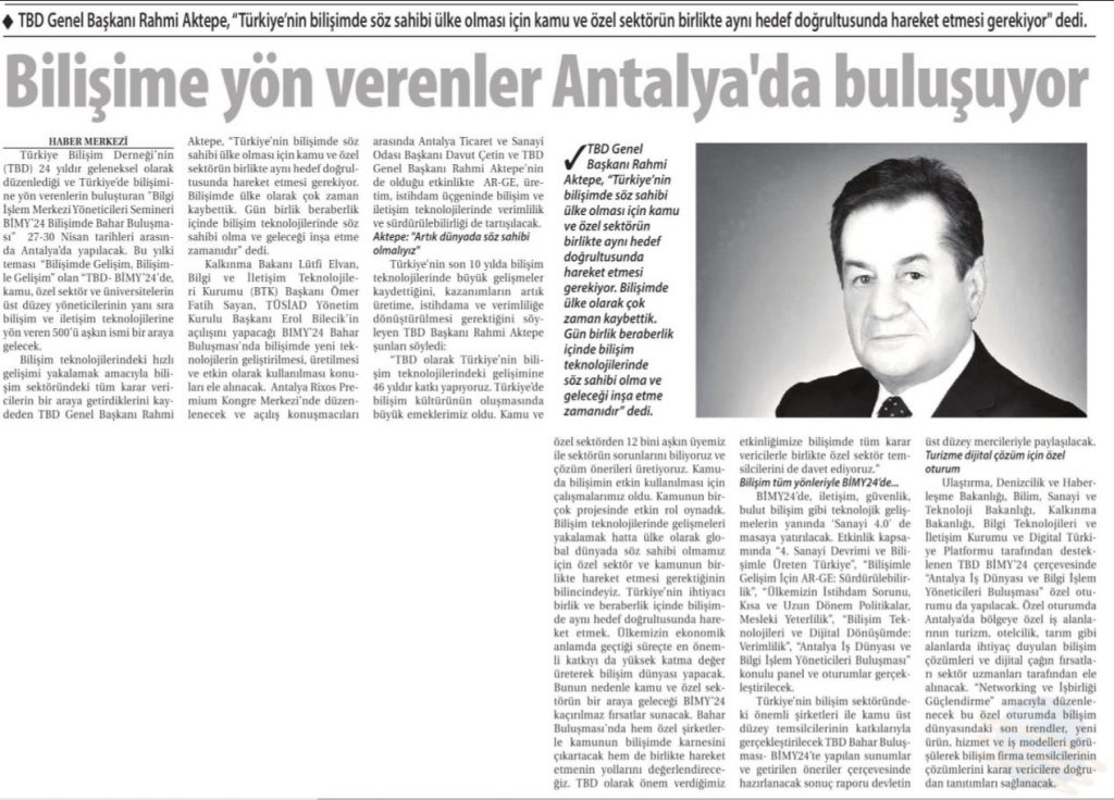 • Bilişime Yön Verenler Antalya’da Buluşuyor – Ticaret Gazetesi (İzmir)