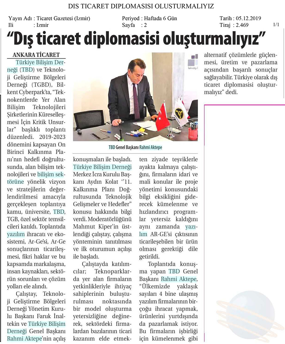 • Dış Ticaret Diplomasisi Oluşturmalıyız – TİCARET GAZETESİ (İZMİR)