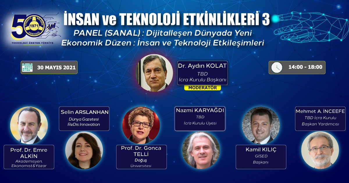 “Dijitalleşen Dünya’da Yeni Ekonomik Düzen : İnsan ve Teknoloji Etkileşimleri” Panelimiz TBD Merkez İcra Kurulu Başkanı Dr. Aydın Kolat tarafından yönetilecektir.