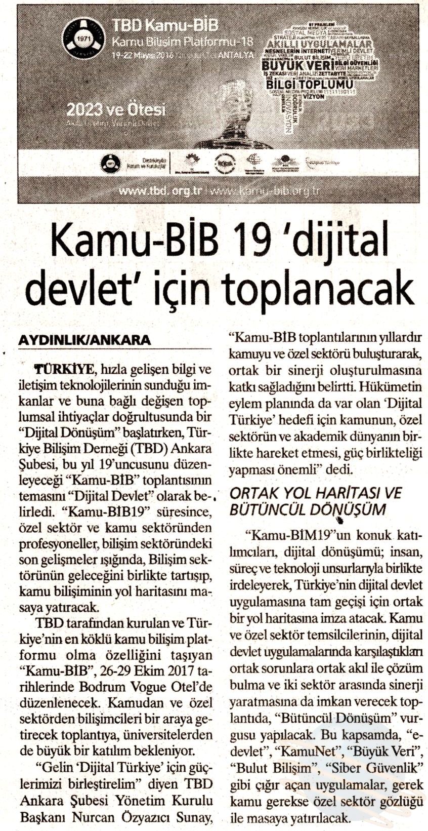 Kamu-BİB 19 ‘Dijital Devlet’ İçin Toplanacak – AYDINLIK
