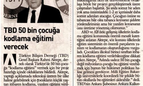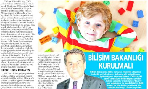TBD 50 Bin Çocuğa Kodlama Eğitimi Verecek – Ayrıntılı Haber