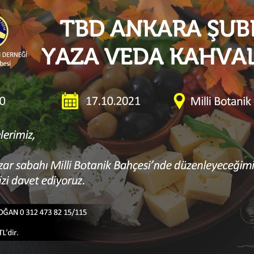 Ankara Şubesi olarak yaz mevsimini birlikte ve keyifle uğurluyoruz. Yaz’a Veda Kahvaltı etkinliğinde birlikte olmaktan mutlu olacağız… Katılım sağlayacak üyelerimizin 15 Ekim Cuma akşamı 17.00’a kadar LCV numarasına bilgi vermeleri