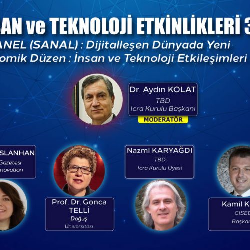 İnsan ve Teknoloji” Etkinlikleri 3 : “Dijitalleşen Dünyada Yeni Ekonomik Düzen : İnsan ve Teknoloji Etkileşimleri” Sanal Paneli Duyurusu 30 Mayıs 2021 Pazar Günü Saat 14:00-18:00 Türkiye Bilişim Derneği olarak