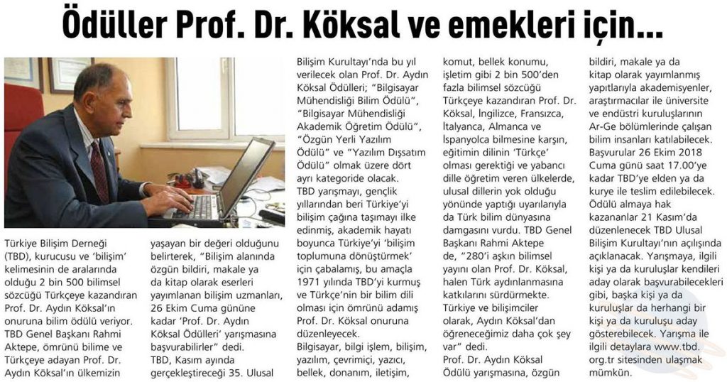 • Ödüller Prof. Dr. Köksal ve Emekleri İçin – BTHABER DERGİSİ