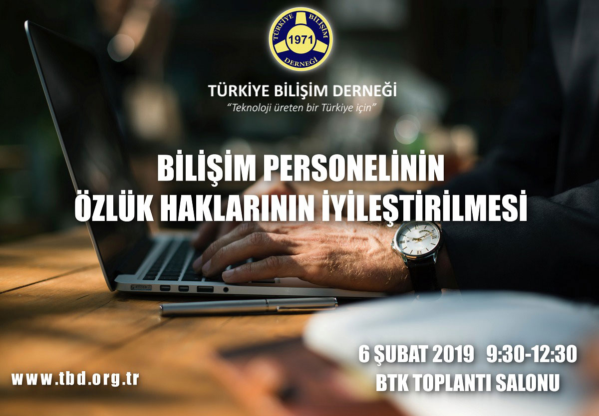 Devlet Personel Başkanlığı (DPB) himayesinde yürütülen “2015-2018 Bilgi Toplumu Stratejisi ve Eylem Planının Kamu Bilişim Personeli İstihdamının Düzenlenmesi” başlıklı 61.nolu Eylem maddesinde Bilişim Uzmanlığı politika olarak belirlenmiş ve gerekçeleriyle sunulmuş olup, özlük haklarına ilişkin yeni düzenlemelerin, hızla değişen teknolojik gelişmeler ışığında görüşülmesi ve bilişim personelinin çalışma verimliliği ile etkin çalışma alanının genişletilebilmesi için Bilişim Personelinin Özlük Haklarının İyileştirilmesi konulu ve iki saat süreli toplantı, 06 Şubat 2019 tarihinde, saat 10:30’da, BTK Ana Konferans Salonu’nda, düzenlenecektir.