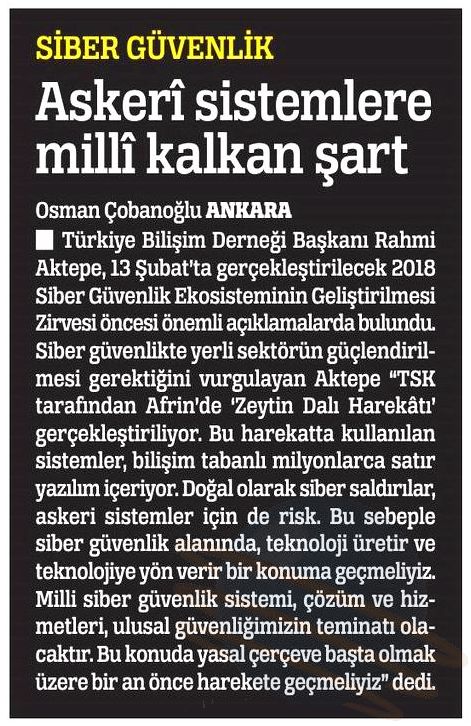 Siber Güvenlik Askeri Sistemlere Milli Kalkan Şart – TÜRKİYE GAZETESİ
