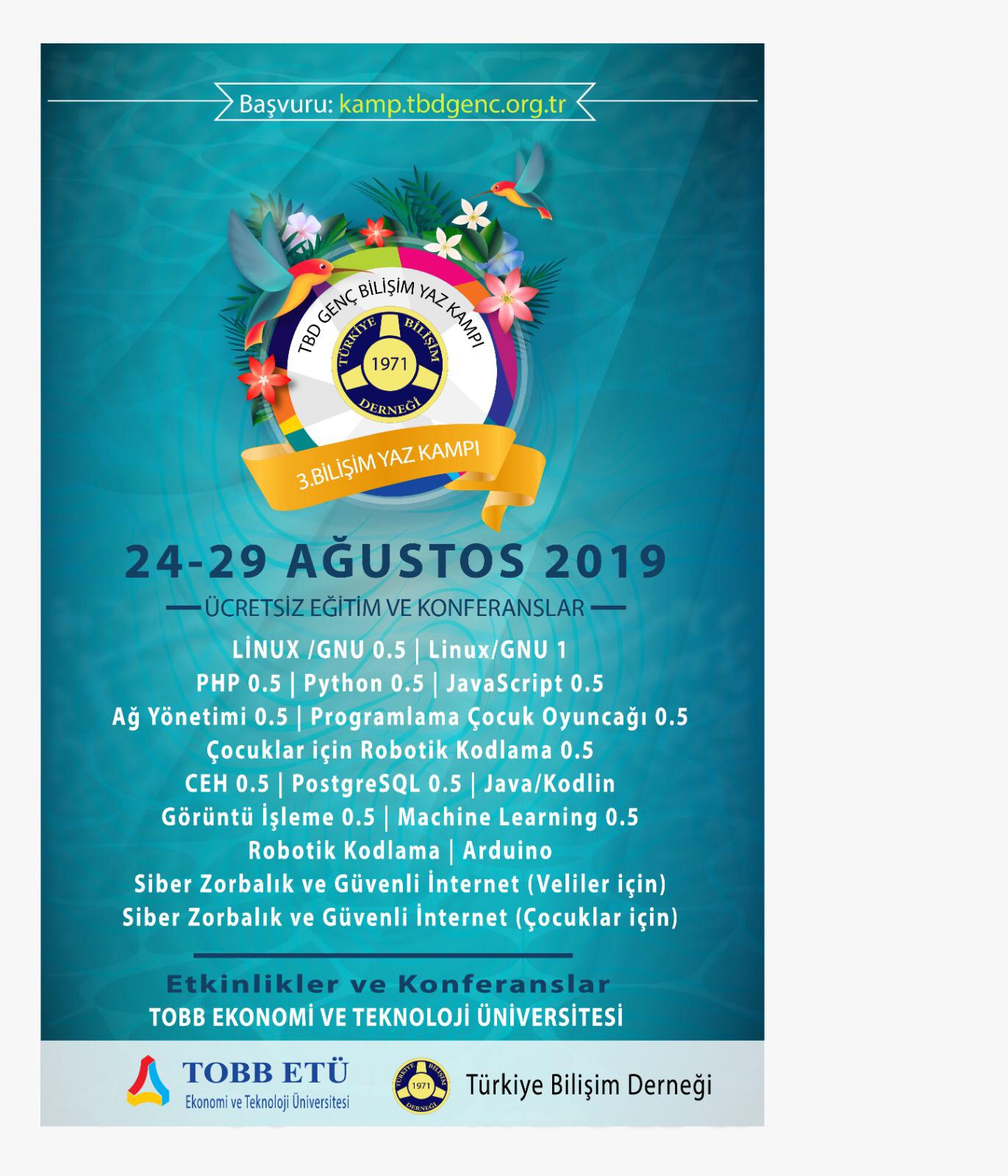 TBD 3. Bilişim Yaz Kampı 24-29 Ağustos 2019 tarihlerinde TOBB Teknoloji ve Ekonomi Üniversitesinde başlıyor!